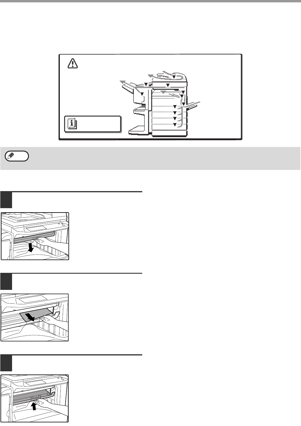 panel as shown below and copying will automatically stop. Follow the procedures below to remove the misfeed.