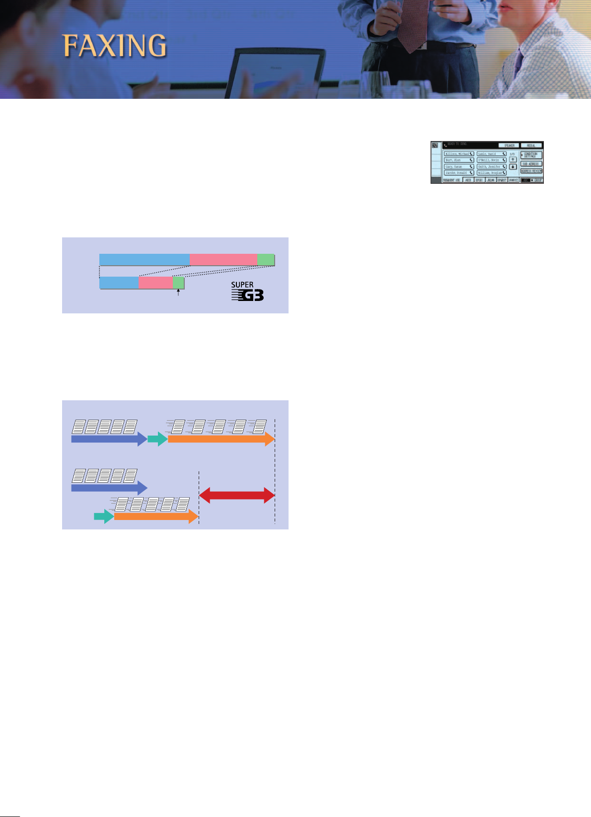 Super G3 fax mode and a variety of efficiency-enhancing features