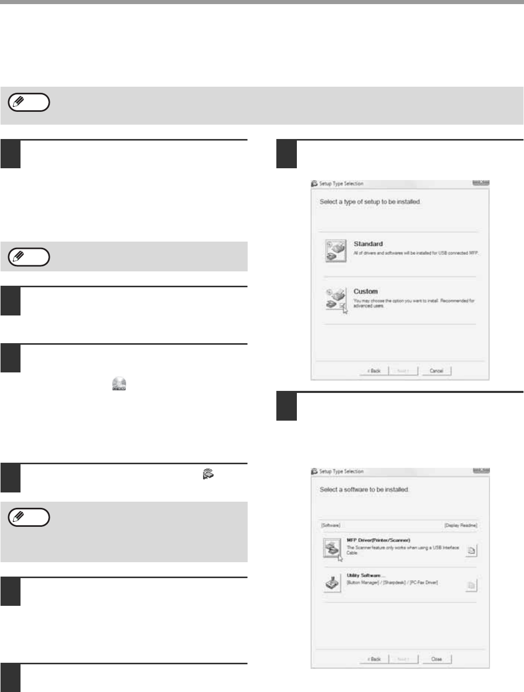 If the machine is used as a shared printer via a server or you only wish to install required software components,