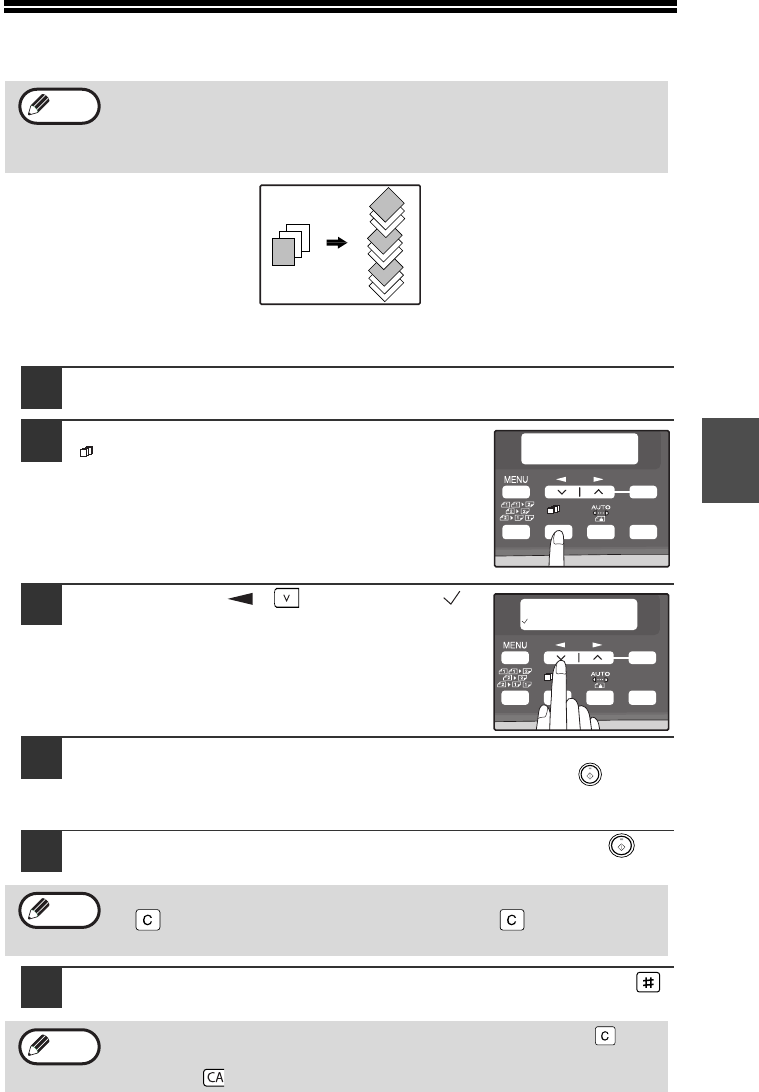 • Per annullare il modo di copia con fascicolazione, premere il tasto [CANCELLA