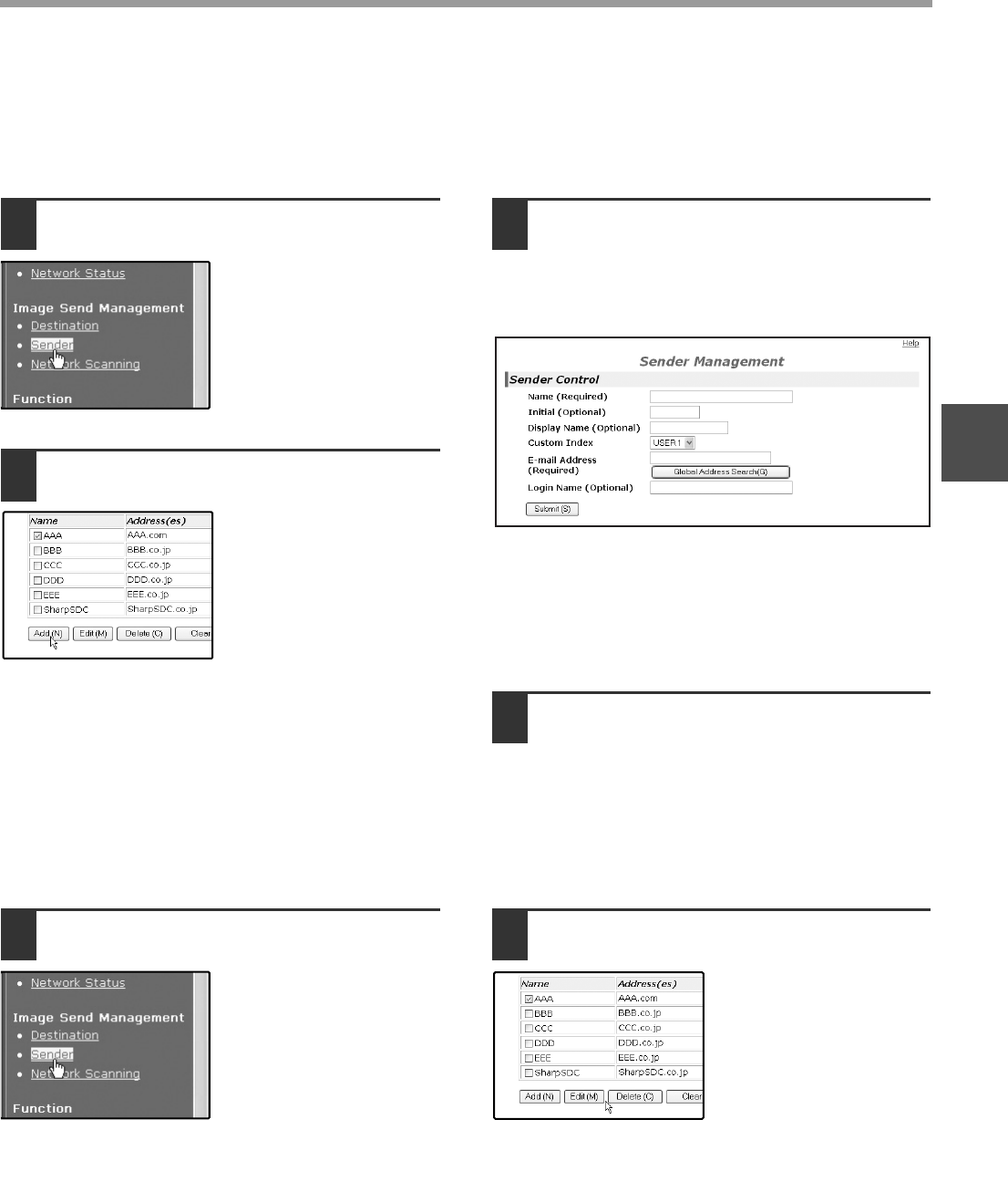 an image by Scan to E-mail. Up to 200 senders can be stored (only one sender can be selected for a transmission).