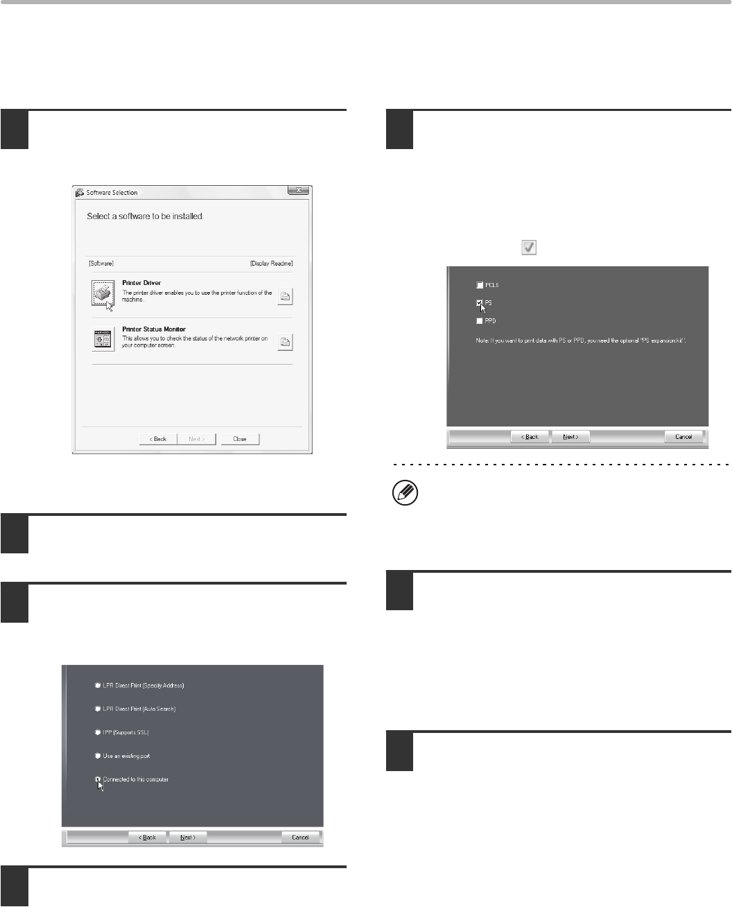 When installing the PCL5c printer driver, PS printer driver, PPD driver, or PC-Fax driver