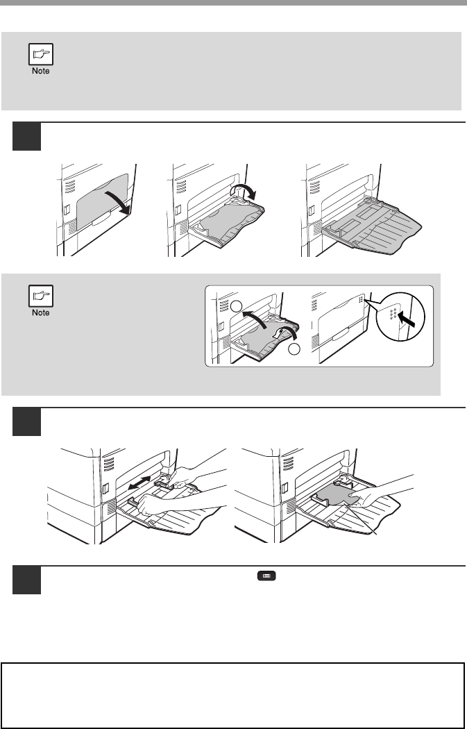 Press the [TRAY SELECT] key ( ) to select the bypass tray.