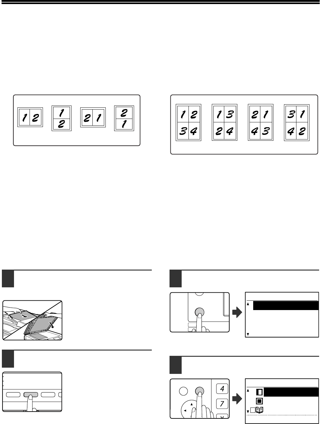 One of two layouts can be selected for 2 in 1 copy, and one of four layouts can be selected for 4 in 1 copy.