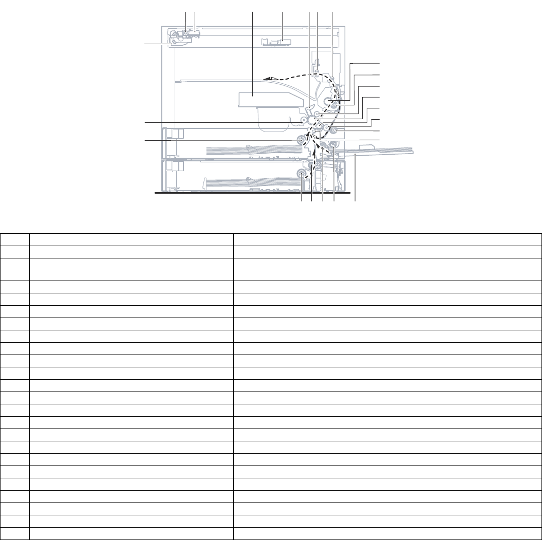 19 Bypass tray transport roller Transports paper from the bypass tray.