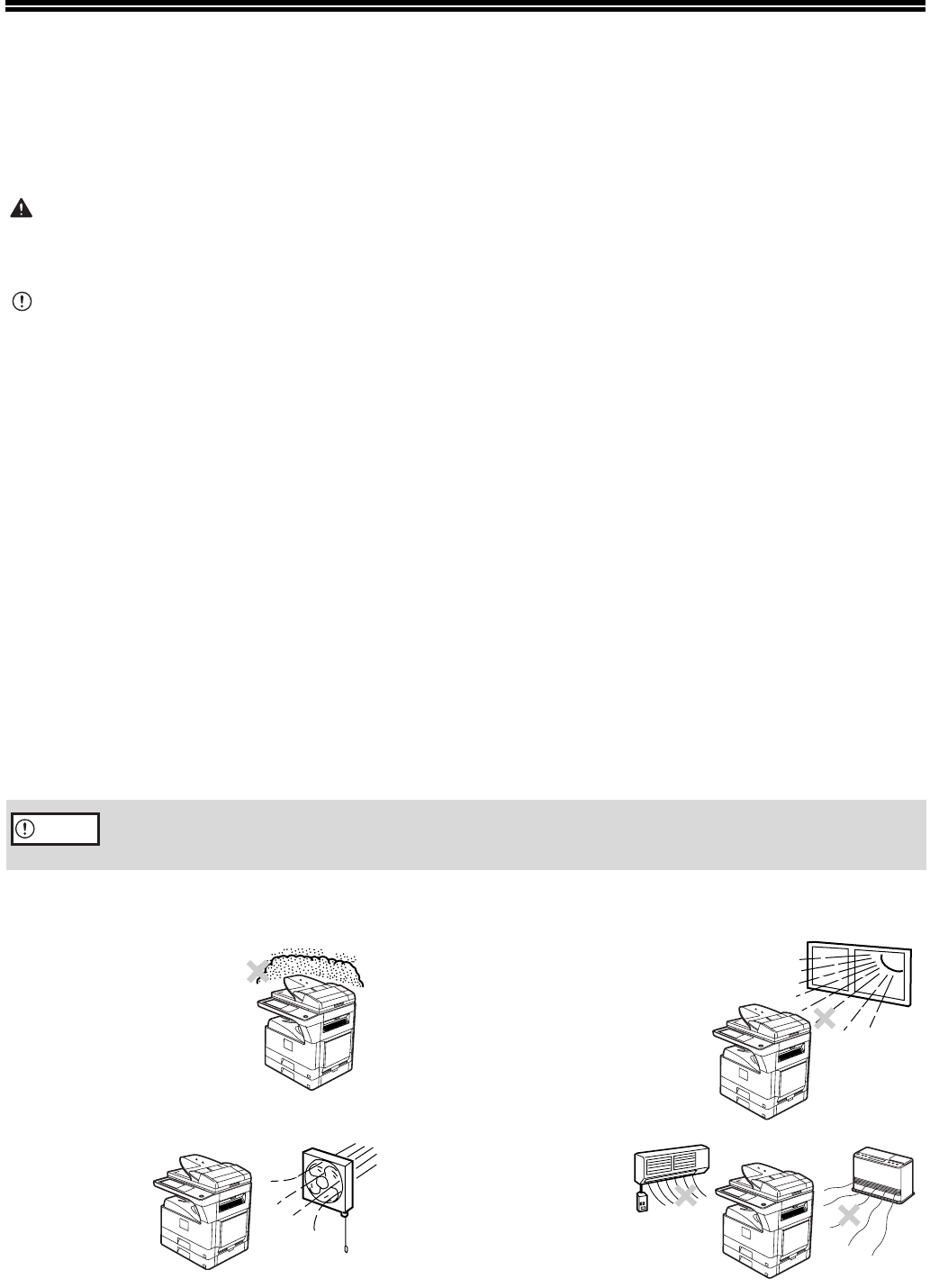 in this condition will cause poor copy quality and malfunctions. Leave the machine at room temperature for at least