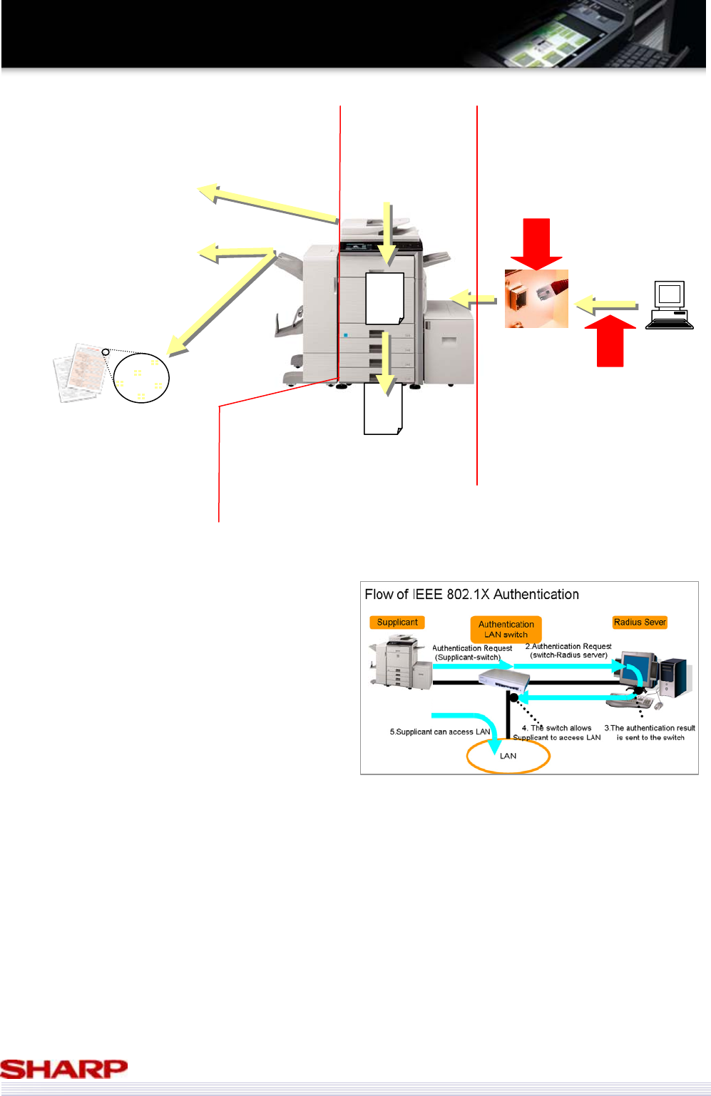 MX-M283N support IEEE802.1X, maintaining the high