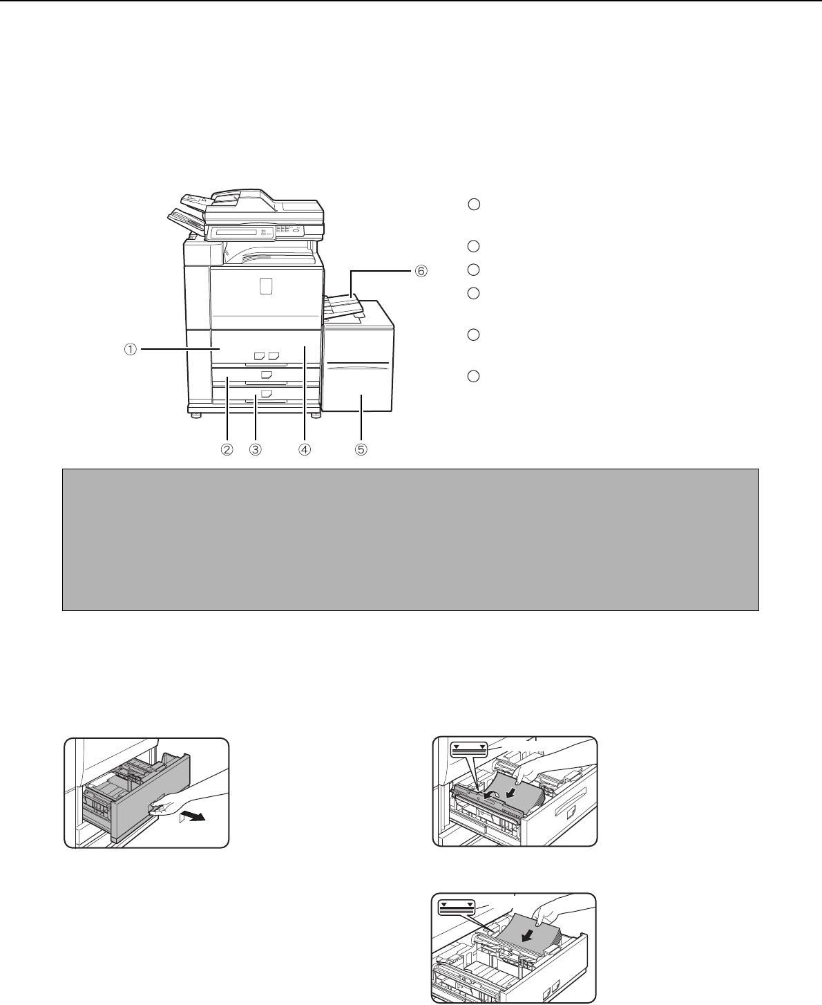 ● Do not place objects on the large-capacity tray. This may damage the tray or interfere with operation.