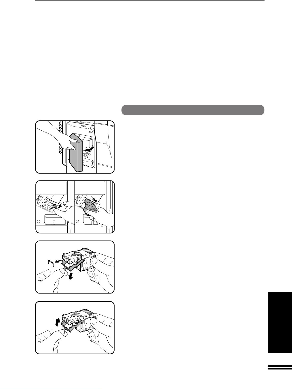 Lower the lever at the end of the staple box and remove
