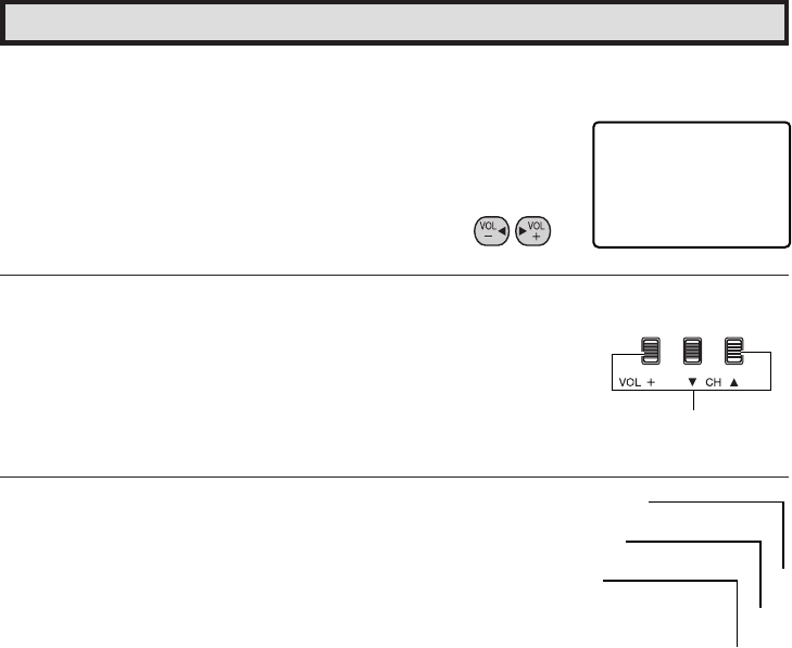 2 Press and hold both VOL k and CH a on the TV set