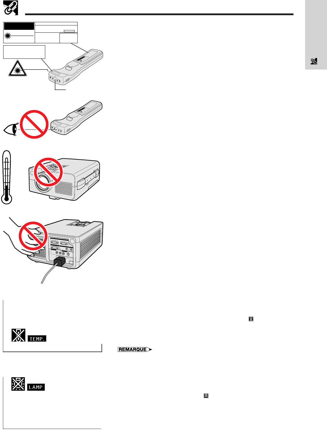 devenir extrêmement chauds pendant l’utilisation du projecteur. Pour éviter des