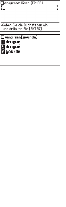. The input screen of the Anagram