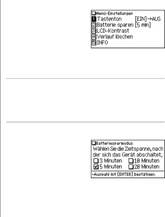 Setting the Auto power off activation time (Batteriesparmodus)