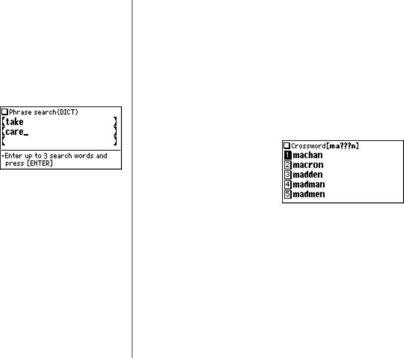 field. The phrases containing ALL the entered words can be searched for.