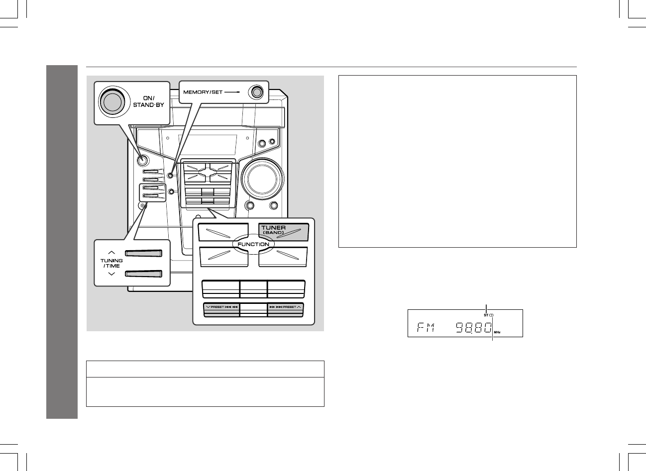 TUNER (BAND), чтобы логасить индикатор “ST”. Прием становится