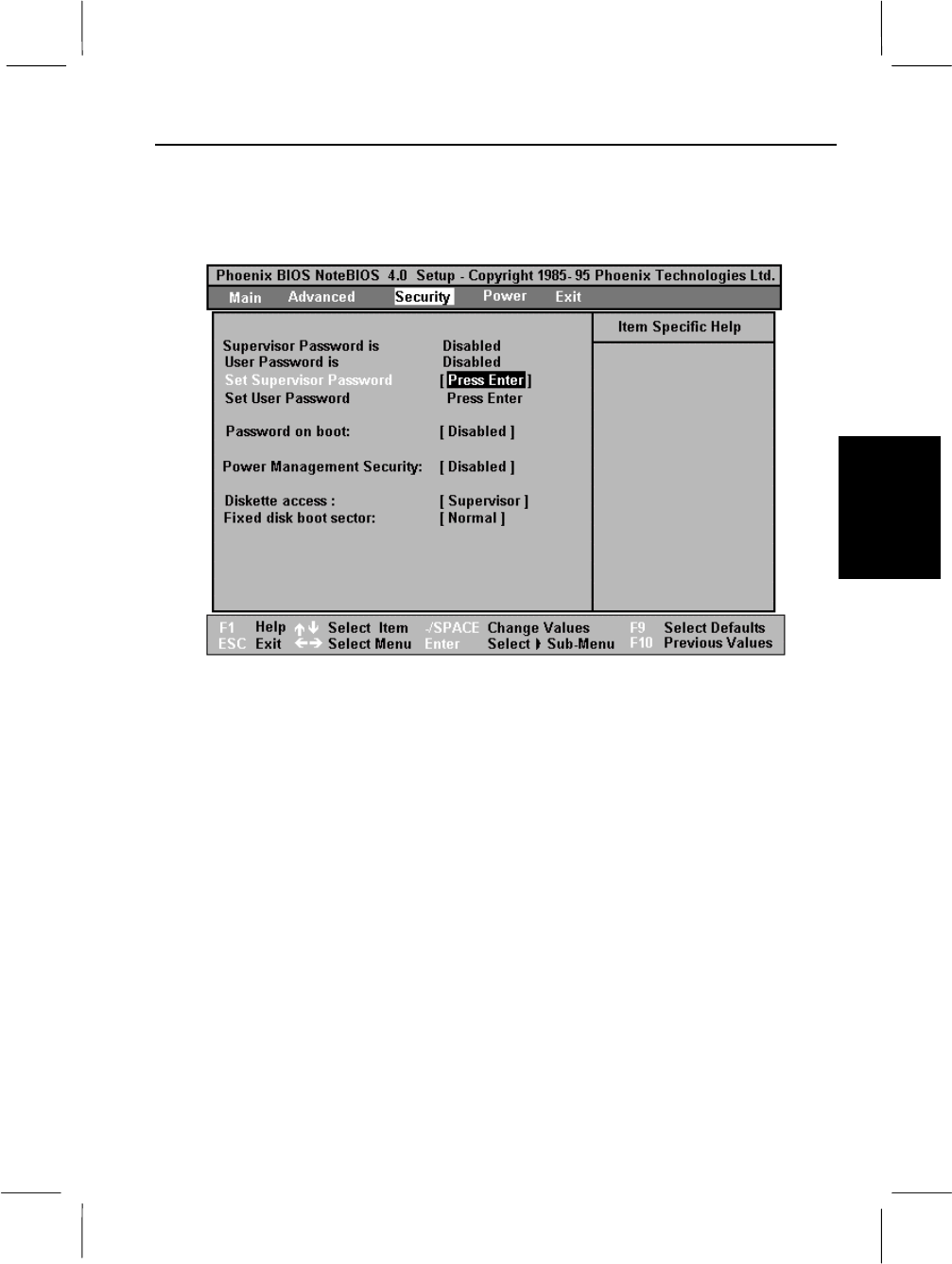 Supervisor Password is Indicates whether a Supervisor Password is required