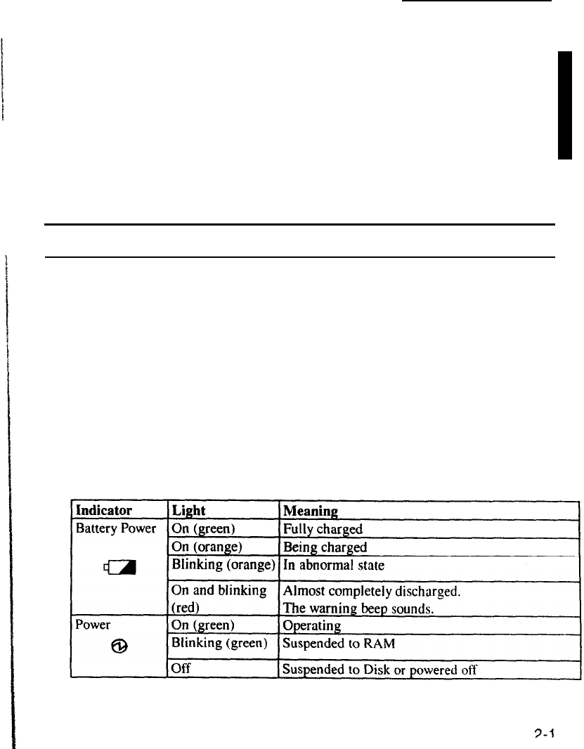 The following indicators show the power status of your computer.