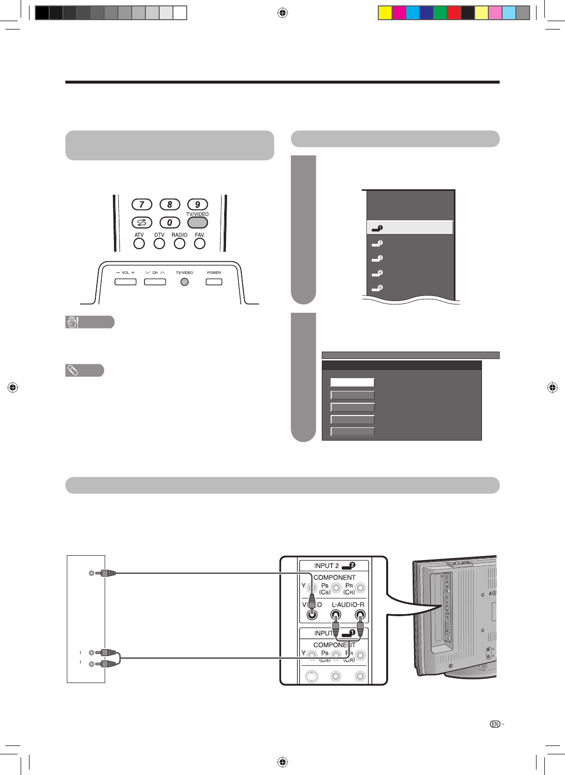 • Please refer to the relevant operation manual (VCR, DVD