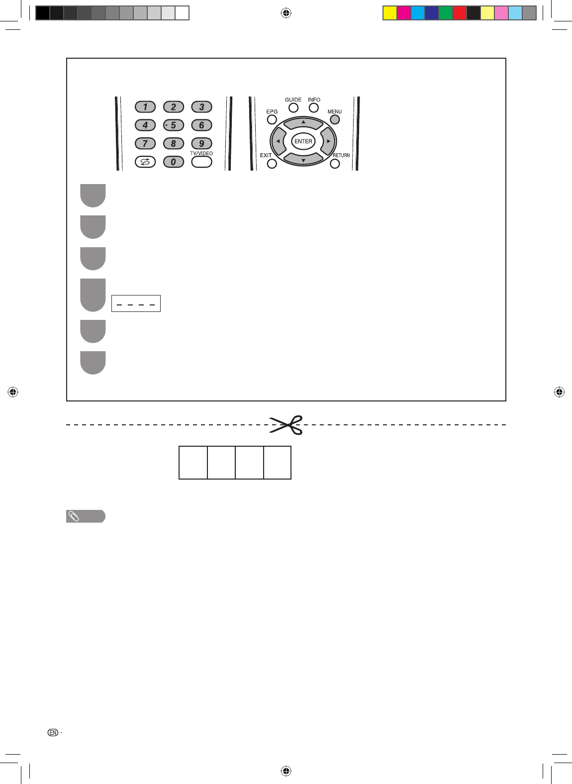• As a precautionary measure, make a note of your password above, scissor it from this manual, and keep it in a familiar place.