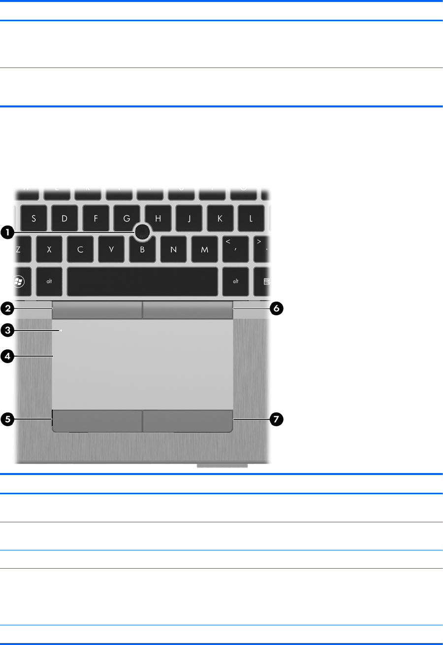 (1) Pointing stick (select models only) Moves the pointer and selects or activates items on the