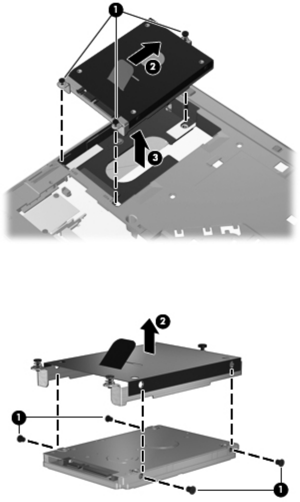 bracket screws (1) from each side of the hard drive (4 total screws).