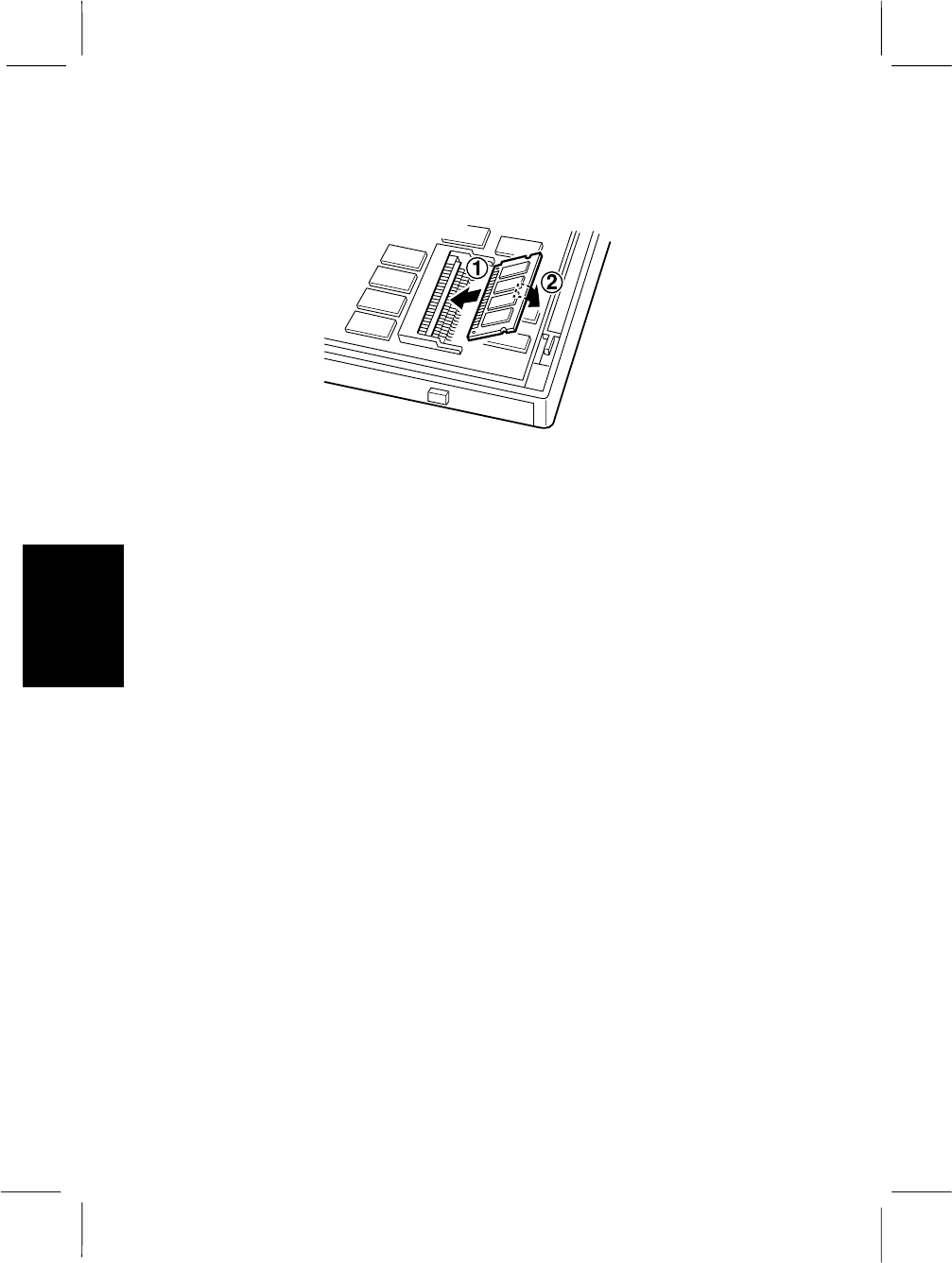 7. Slowly move the memory module to a horizontal position until the locking tabs