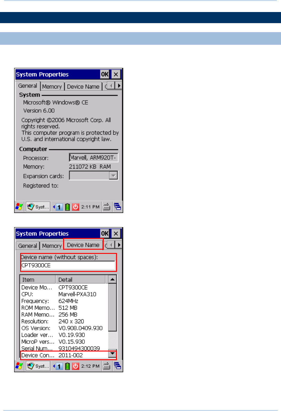 2) Select the Device Name tab to change the identification for the mobile computer.