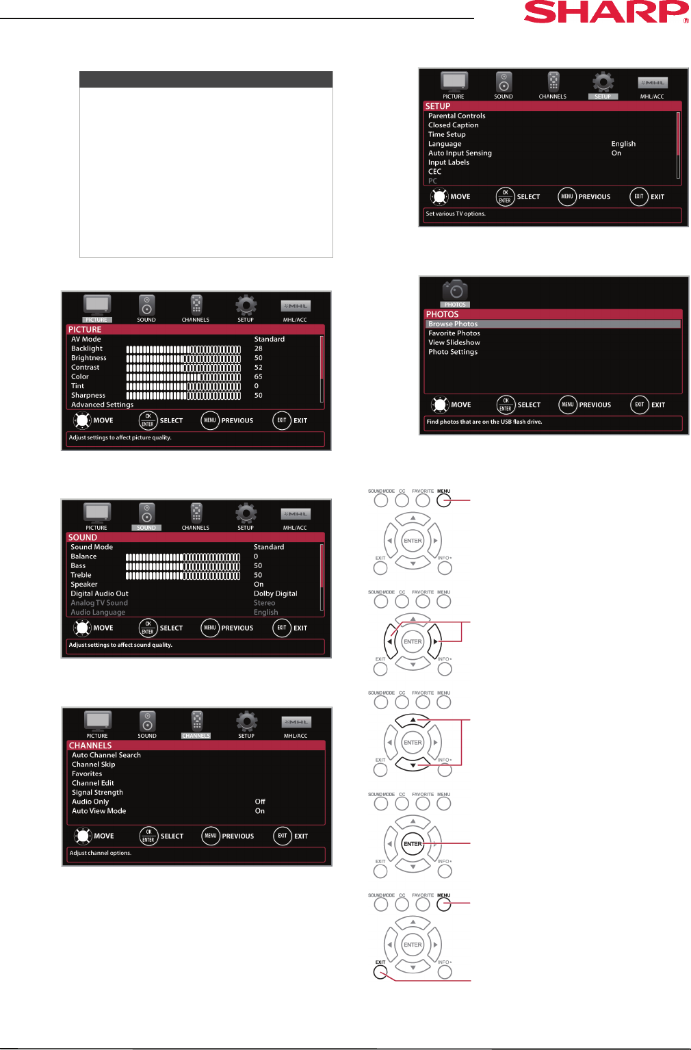 TV mode, unless otherwise indicated.