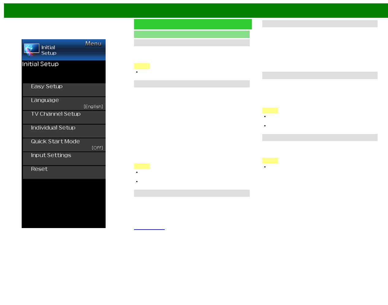 To perform the operation, refer to "Initial Setup" > "Input