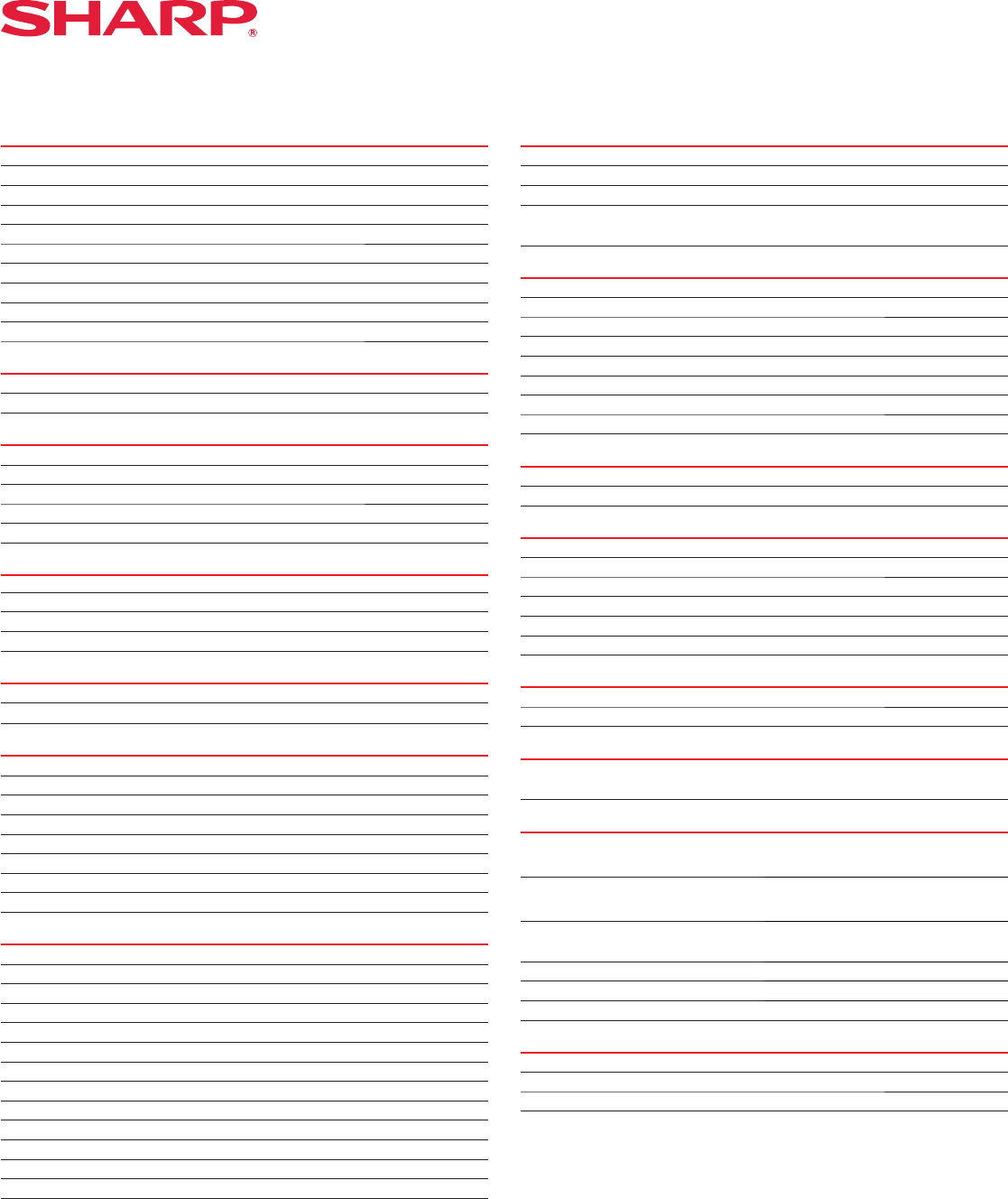 Sharp, AQUOS and all related trademarks are trademarks or registered trademarks of Sharp