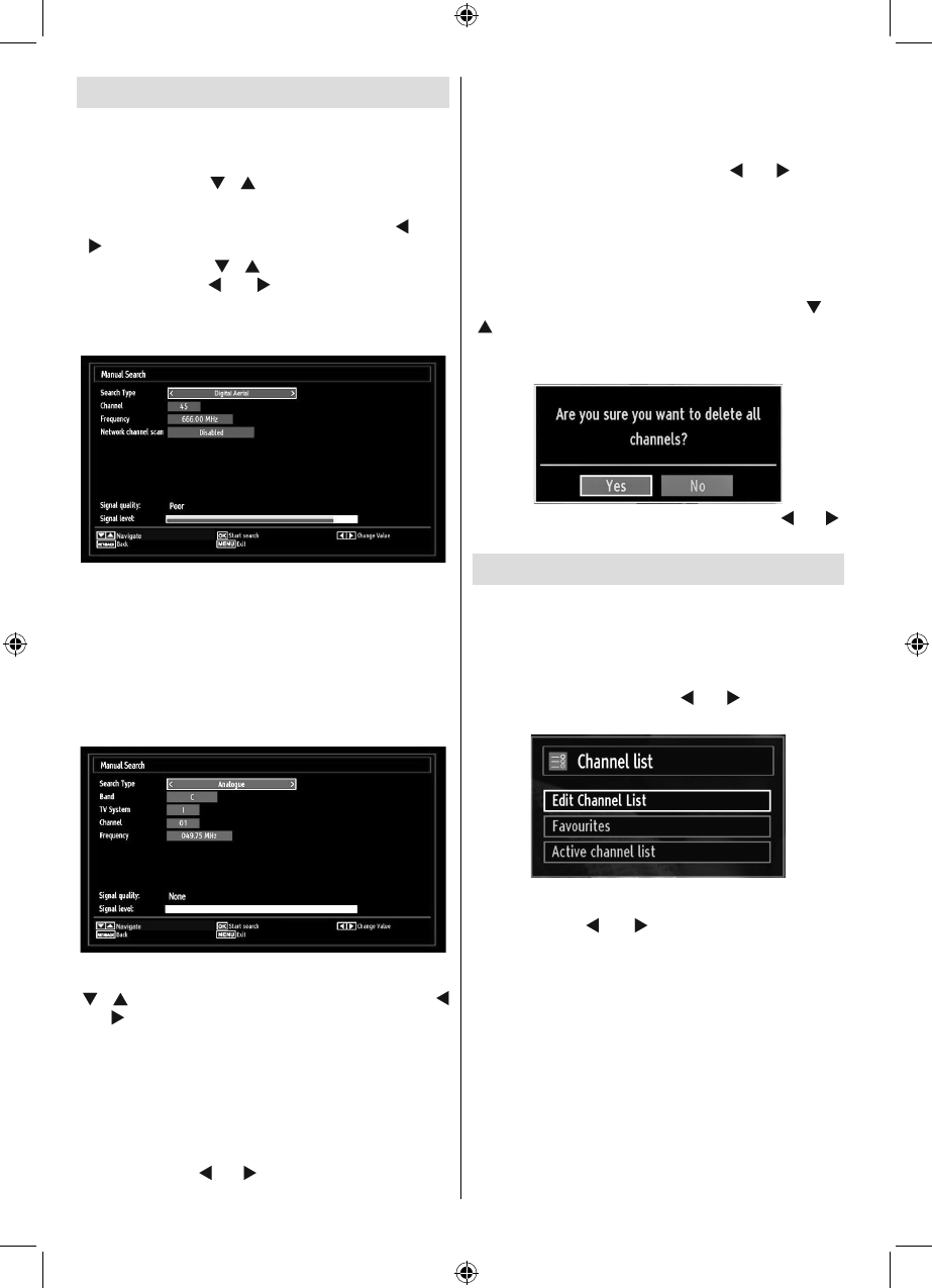 menu by using “ ” or “ ” and OK buttons. Analogue