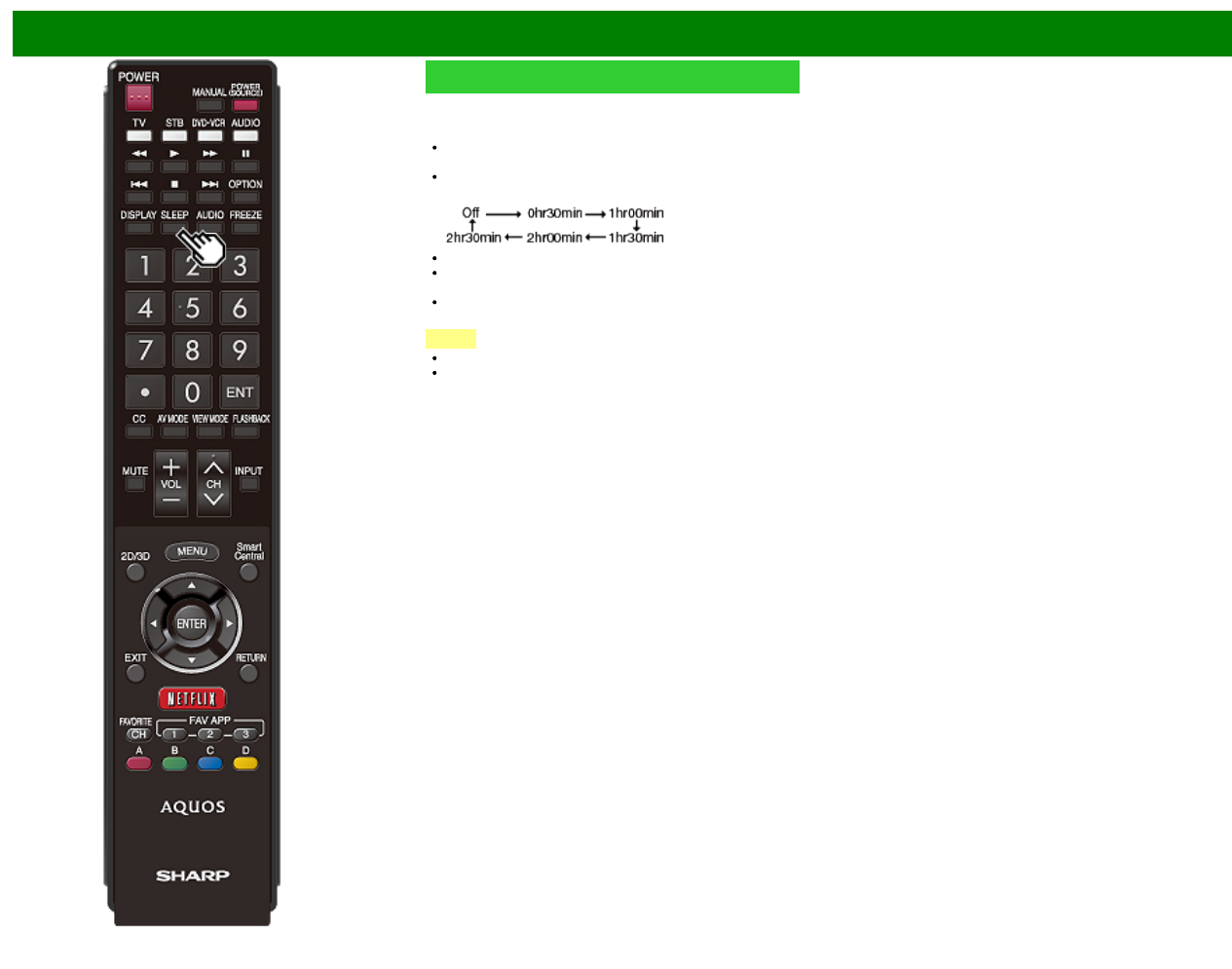 Each time you press SLEEP, the remaining time switches