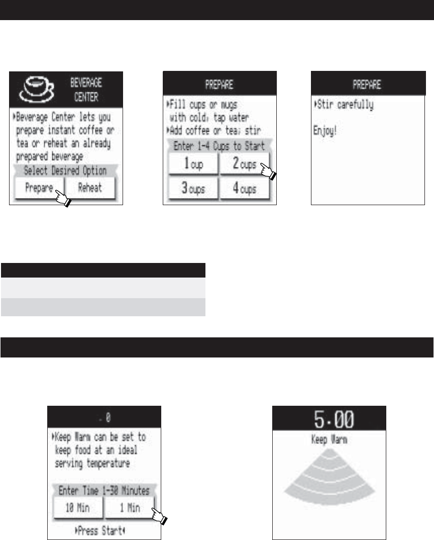 Beverage Center enables you to restore coffee or tea to a more suitable drinking temperature or to prepare