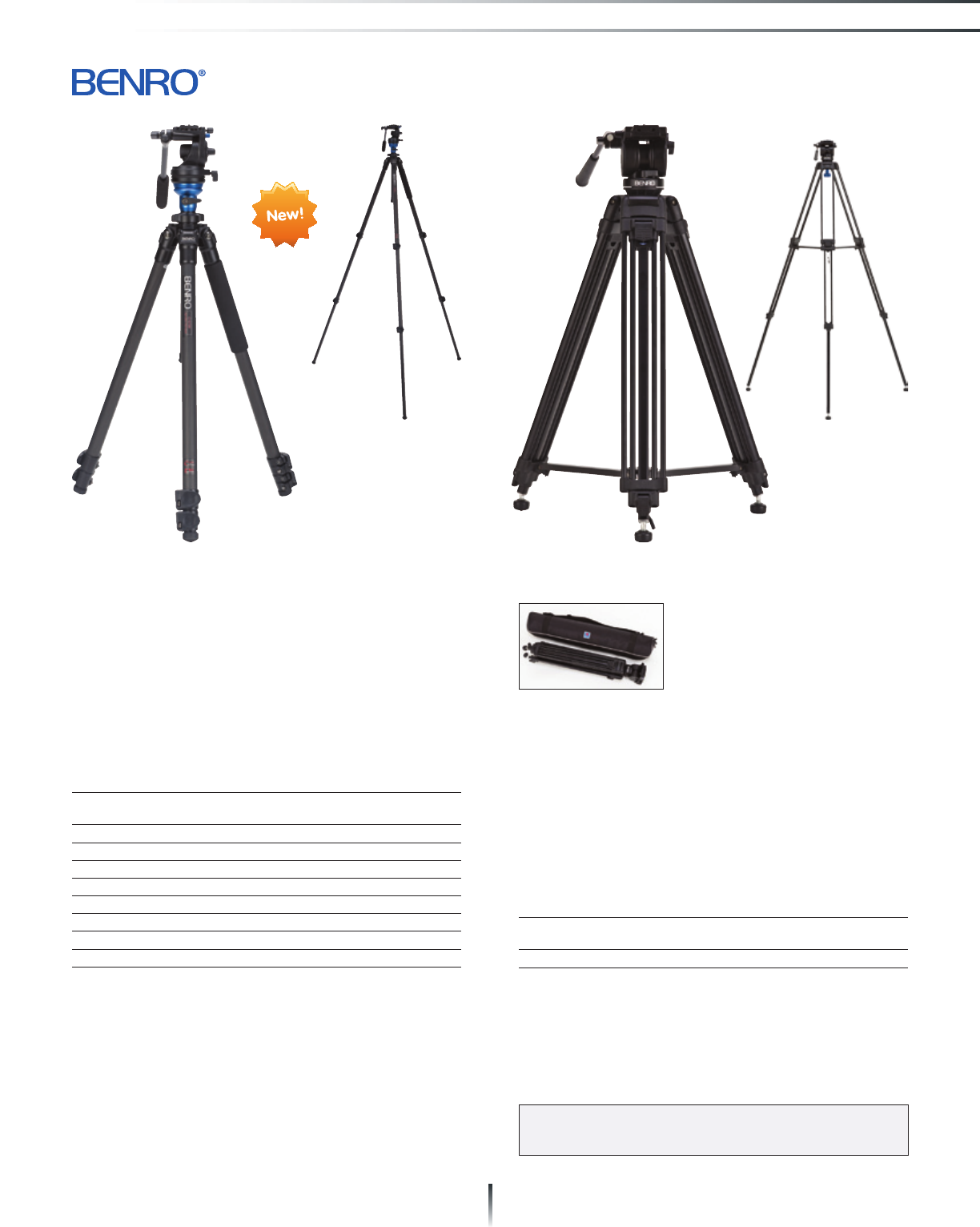 each Benro Video Tripod Kit is based on an eighth-generation design of