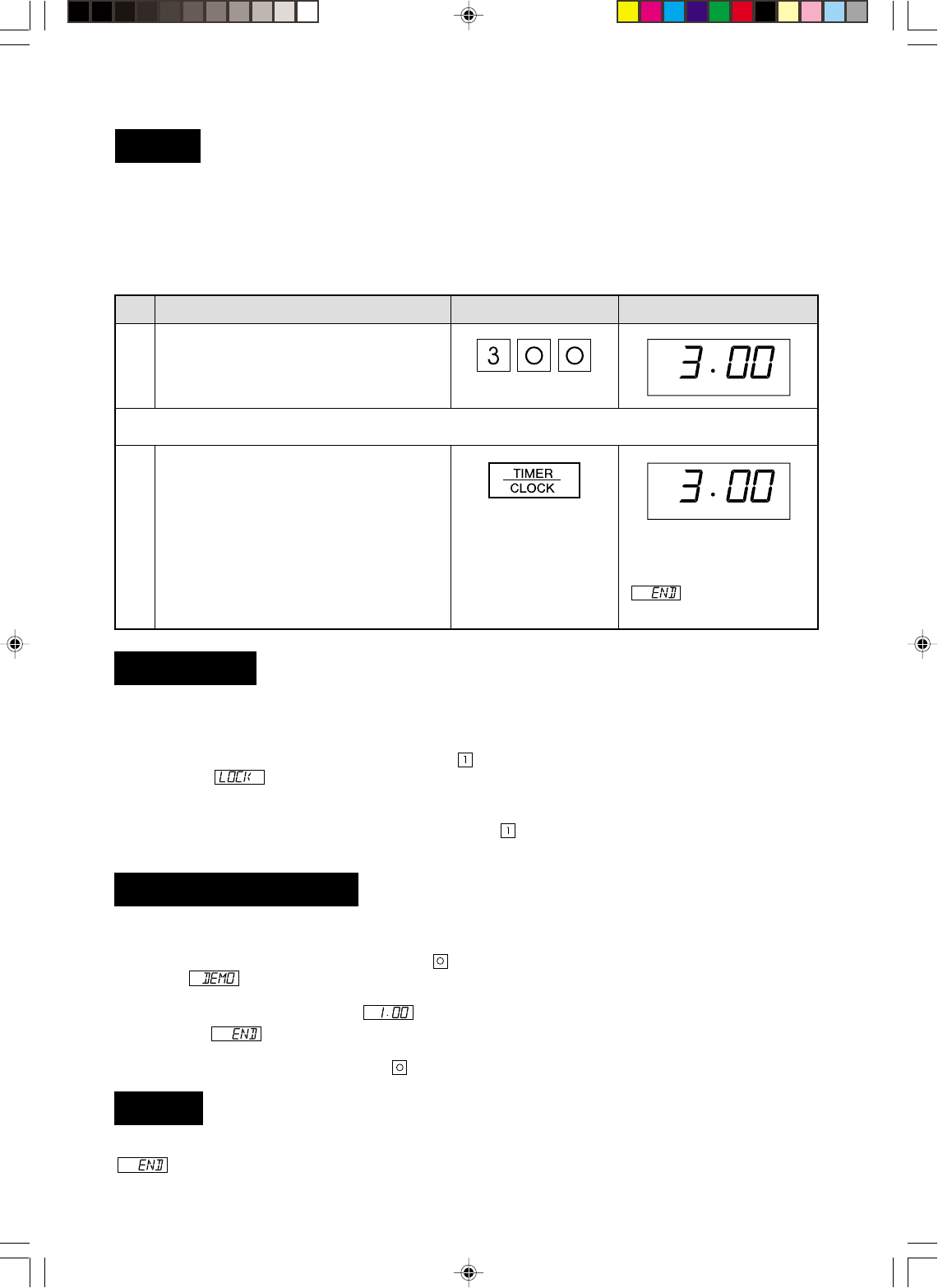 To demonstrate, press the TIMER/CLOCK pad , and press the INSTANT COOK/START pad and hold for