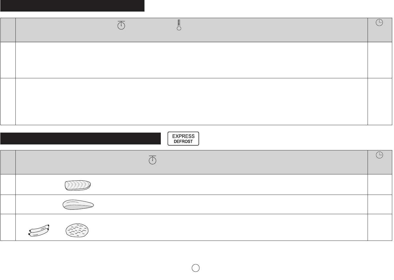 EXPRESS DEFROST MENU GUIDE