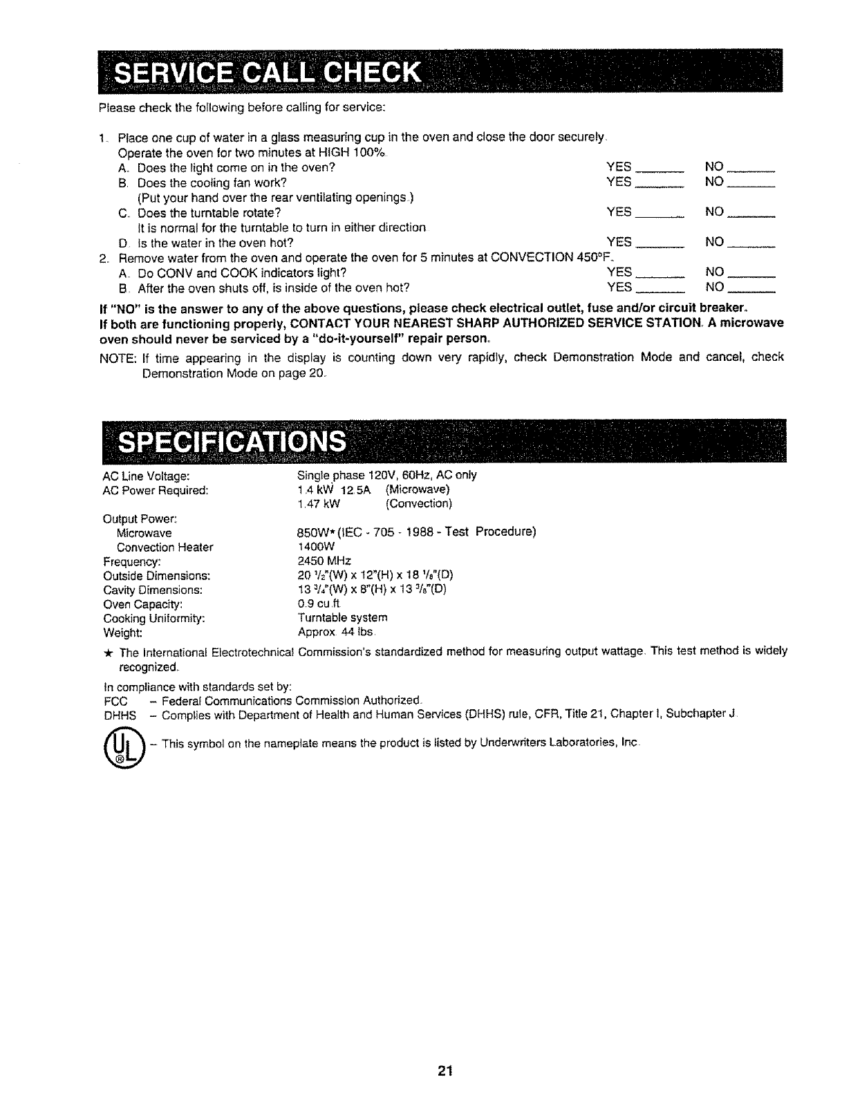 If both are functioning properly, CONTACT YOUR NEAREST SHARP AUTHORIZED SERVICE STATION, A microwave