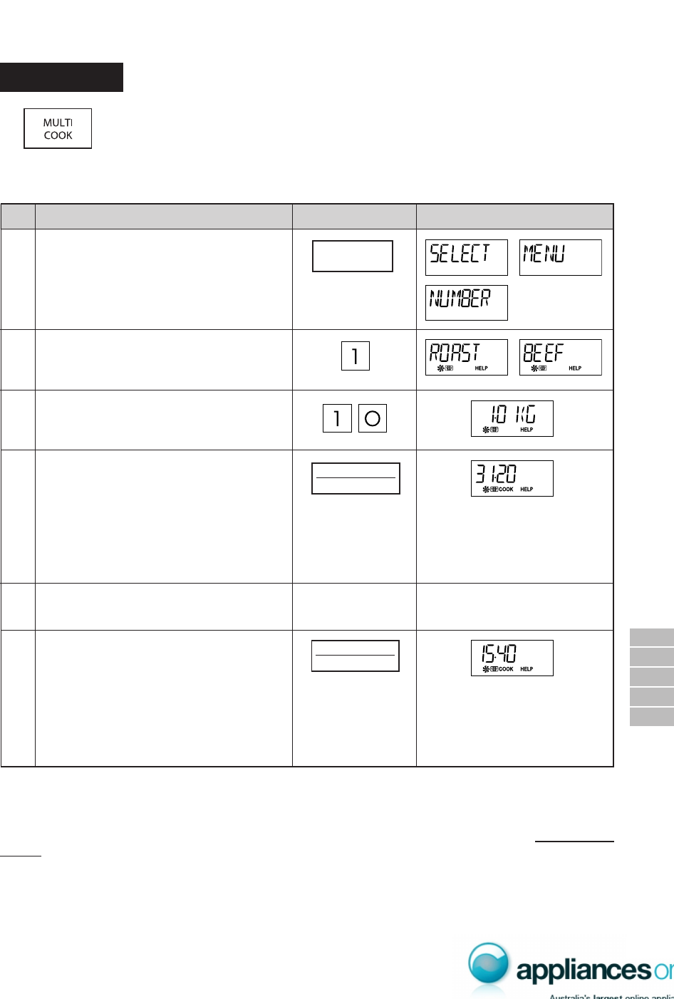 Follow the details provided in MULTI COOK
