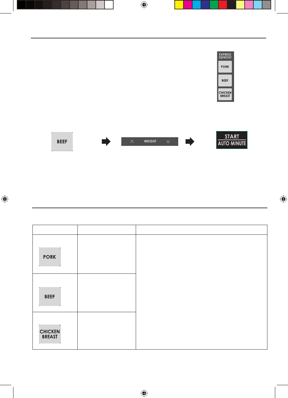 AUTO COOK / EXPRESS DEFROST enables you to cook or defrost the foods listed
