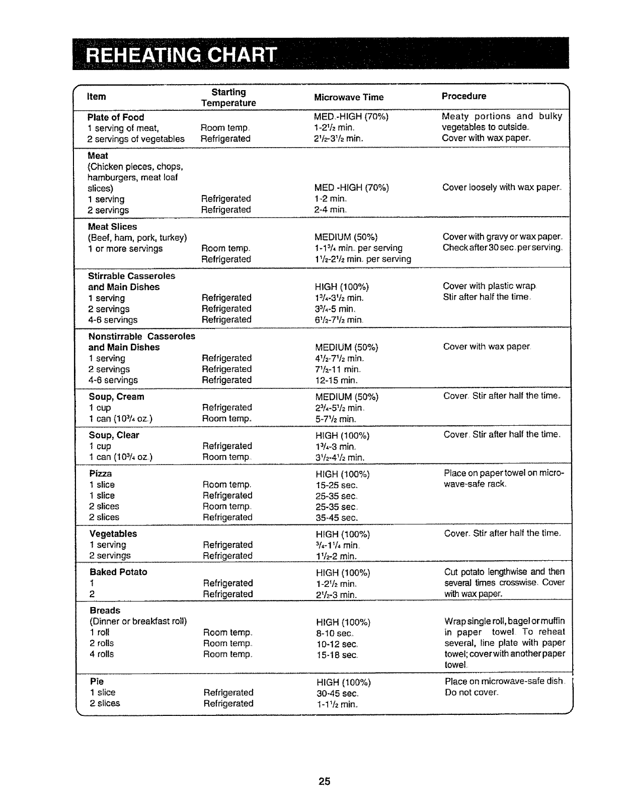 Item Starting Microwave Time Proced ure