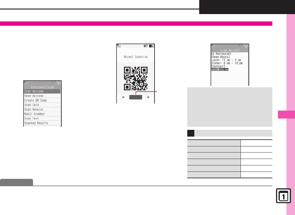 (Saving linked info to Phone Book (Opening saved scan results (Using linked info (Using images as Wallpaper (Saving images &