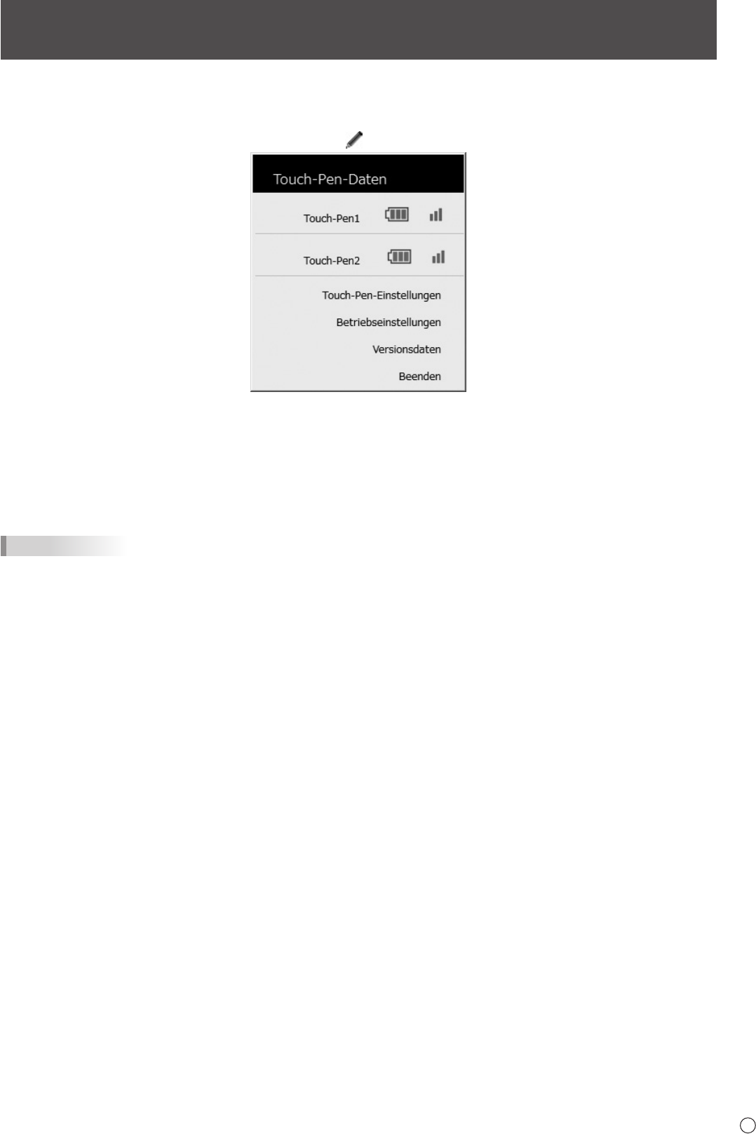 • Touch-Pen-Daten : Anzeige der Registrierungsnummer, des Batterieladezustands und der Signalstärke des derzeit