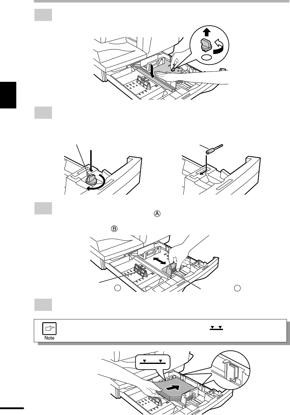 Adjust the paper guides on the paper tray to the copy paper width and length.