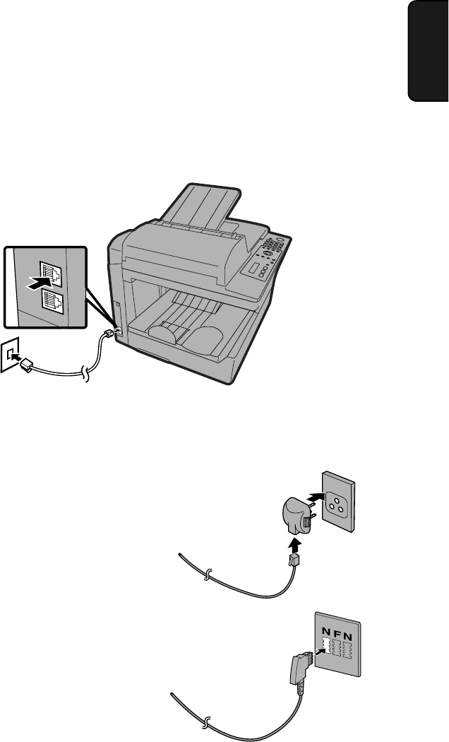 marked TEL. LINE. Insert the other end into a wall telephone socket.