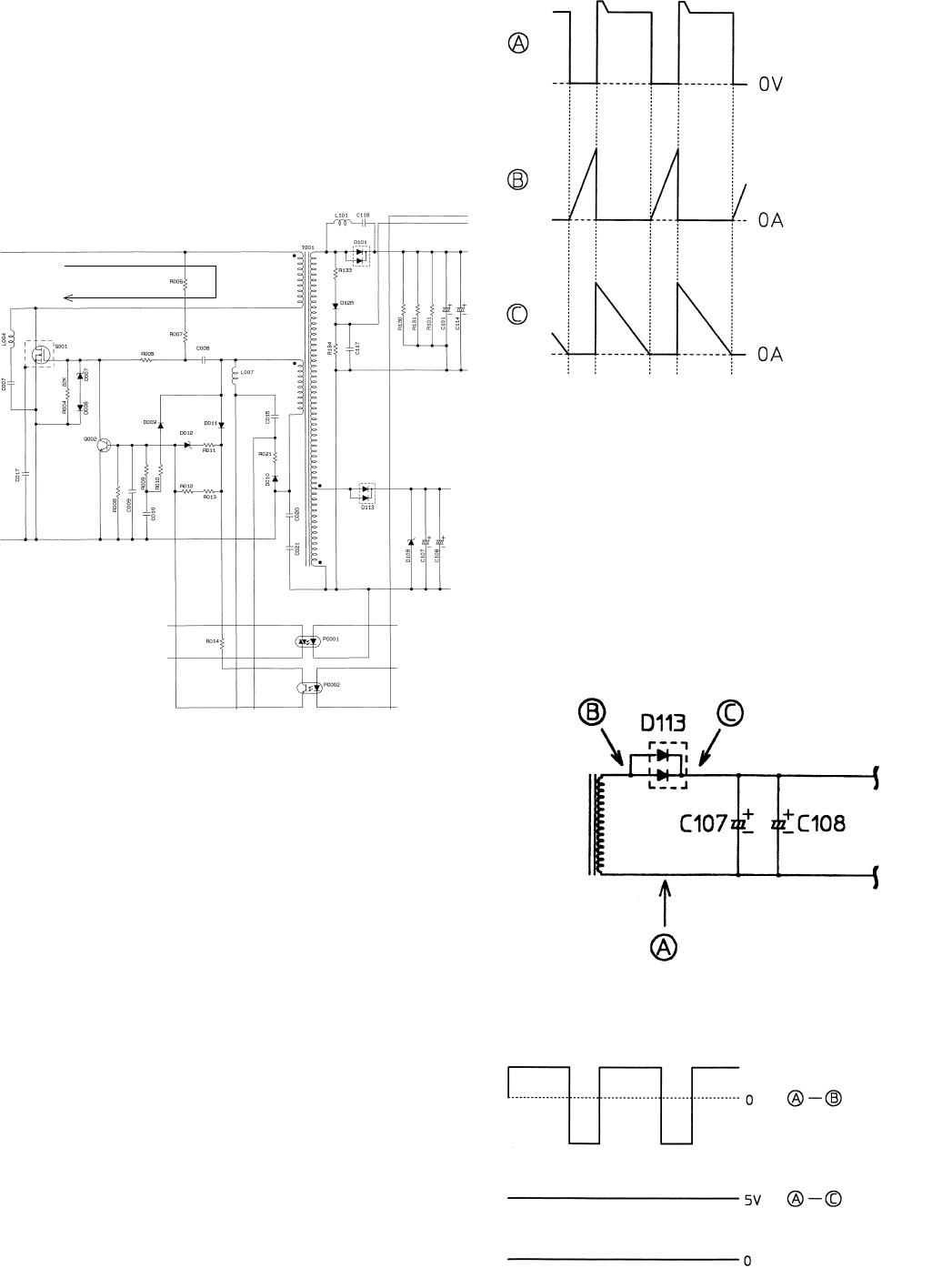 diode D113, and smoothed by C107 and C108.