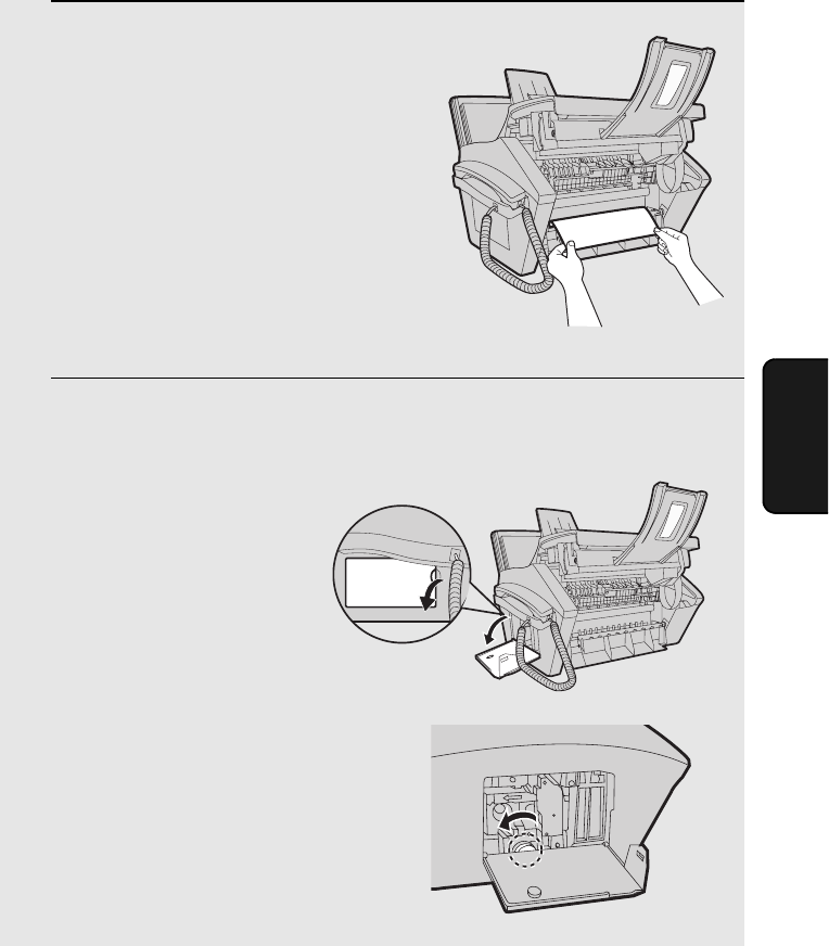 and rotate the white knob in the direction shown to feed out the jammed