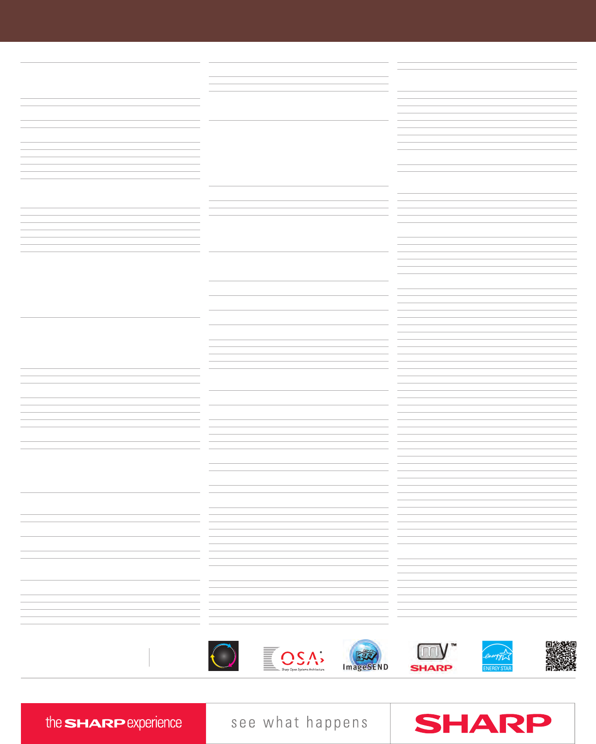 Design and specifications subject to change without notice. Sharp, Sharp OSA, Sharpdesk, My Sharp, and all related trademarks are trademarks or registered trademarks of Sharp Corporation and/or its affiliated companies.