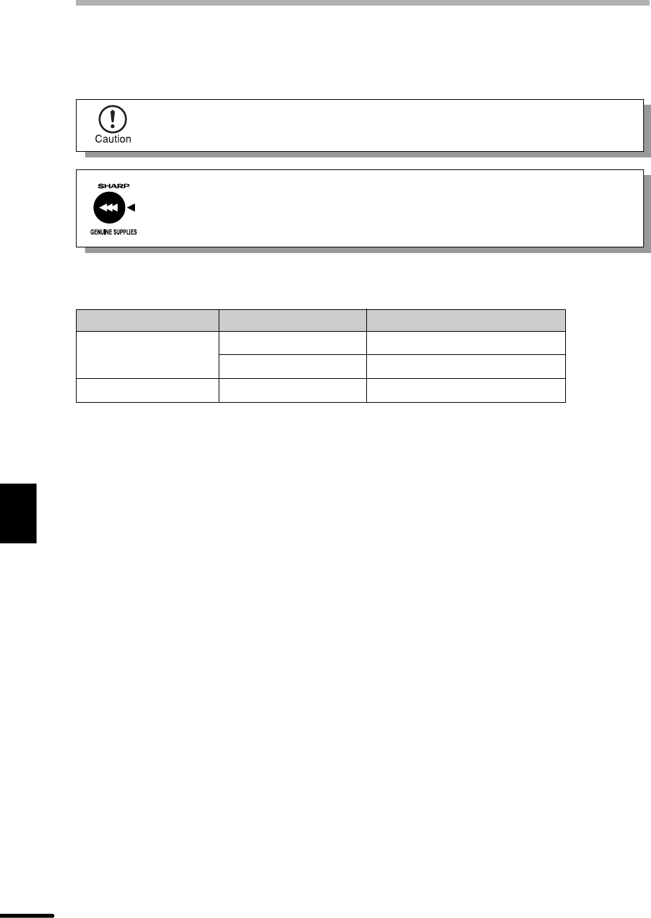 Be sure to use only genuine SHARP parts and supplies.