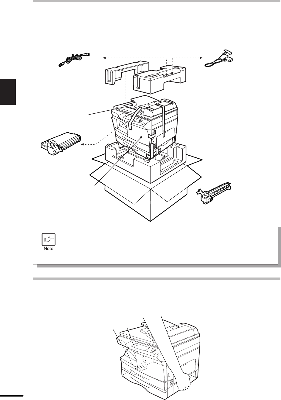 Be sure to hold the handles on both sides of the copier to unpack the copier and carry it to the