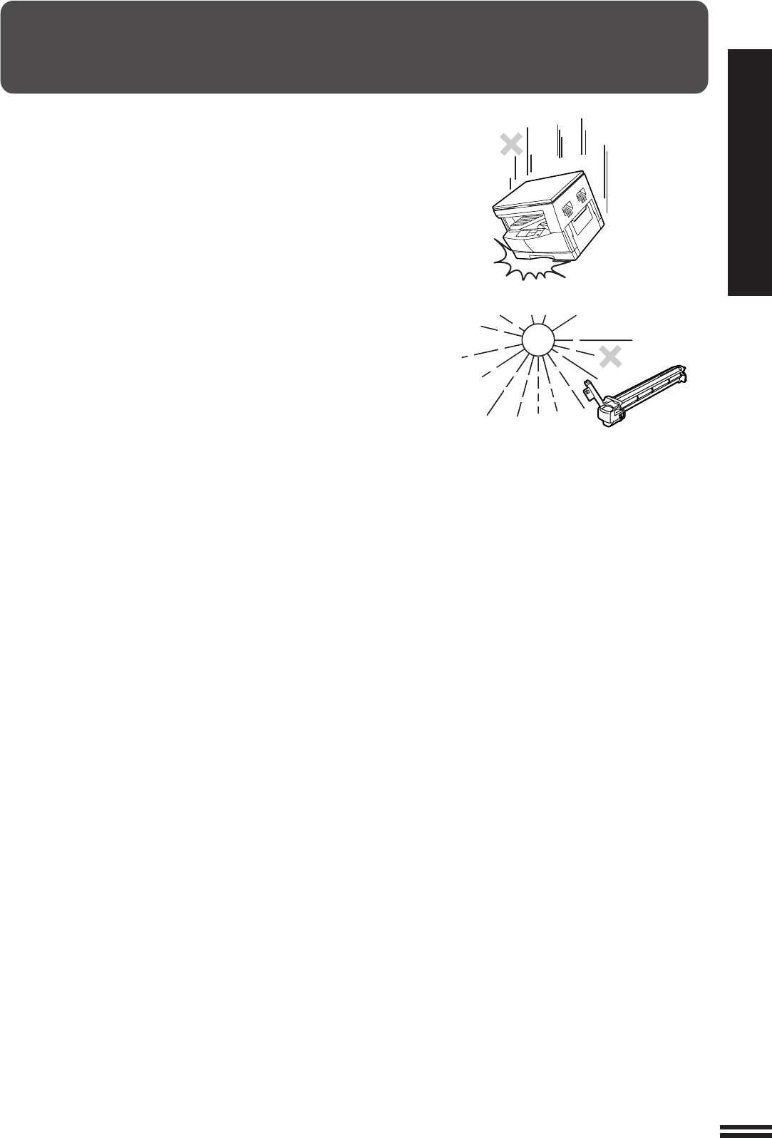 Do not drop the copier, subject it to shock or strike it against any